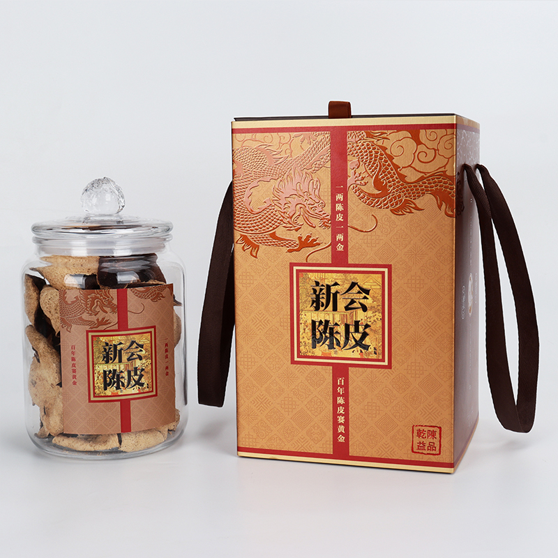 净含量:150g 毛重:1.85kg 产区:广东新会天马核心产区 原料:新会干仓陈皮 规格:单瓶 1.选用广东新会天马产区陈皮10年陈化原料 2.从采收,洗选,开皮,翻皮到晒皮贮存与陈化等每一个环节都坚持人手工制作,精心挑选。 3.新会陈皮味辛性温,甘香醇陈,油包粒大,油室饱满,芳香浓郁,具有唤醒味蕾,改善食欲不振,消滞健胃。 4.新会陈皮不仅能单独泡茶,还可以用来与其他茶叶搭配冲泡,白茶,红茶,普洱等。
