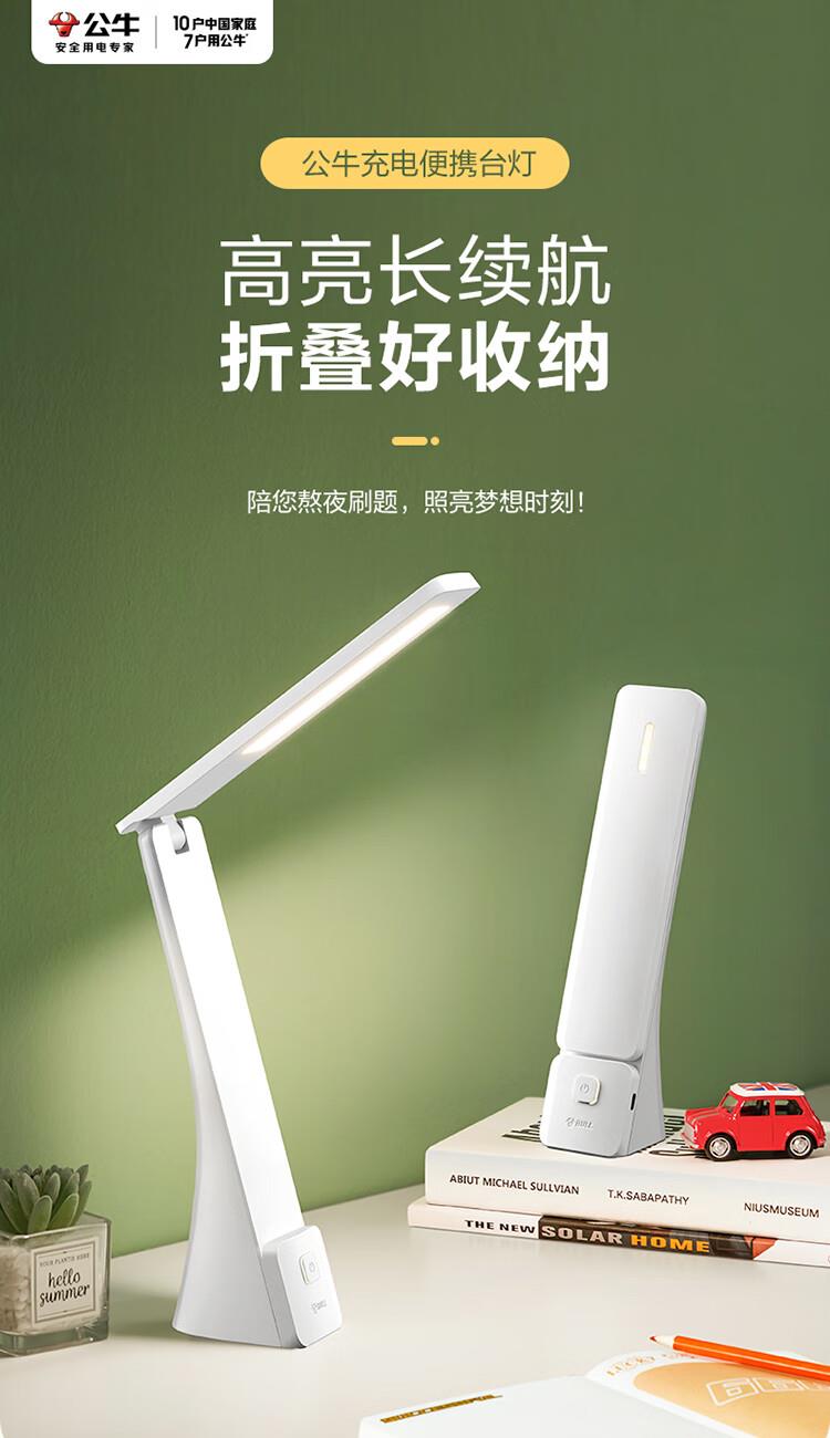 公牛折叠台灯学生床头带小夜灯ML-B150A-DS