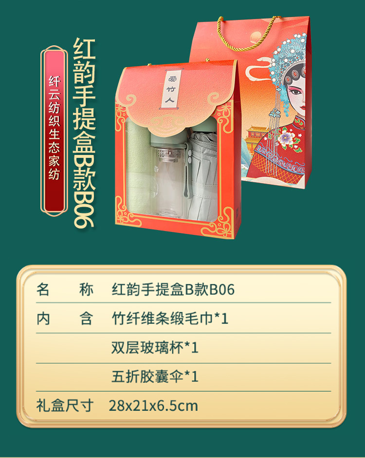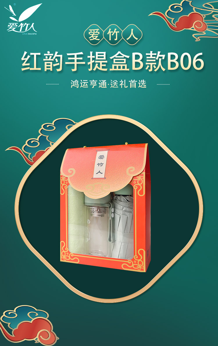 爱竹人红韵礼盒条缎毛巾玻璃杯五折伞3件套B06