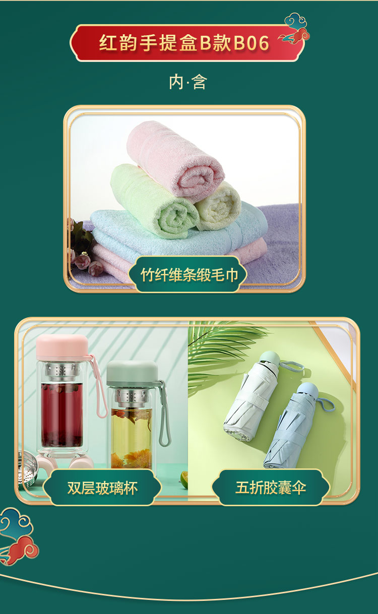 内含: 竹纤维条缎毛巾*1 双层玻璃杯*1 五折胶囊伞*1 实用 美观 高颜值 开门红 节日礼品 随手礼 劳保 福利 积分兑换 一件代发