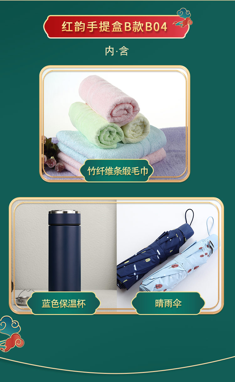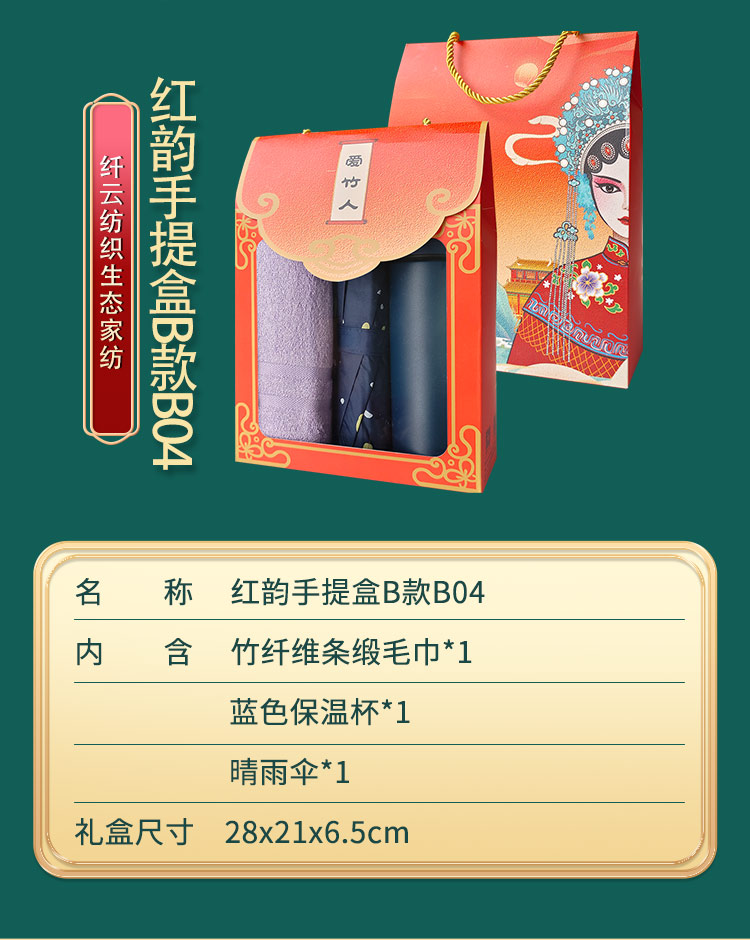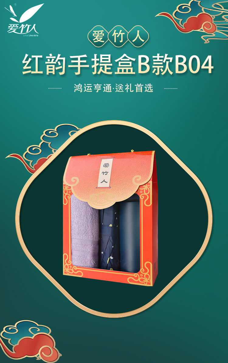 爱竹人红韵礼盒竹毛巾吧保温杯晴雨伞3件套B04