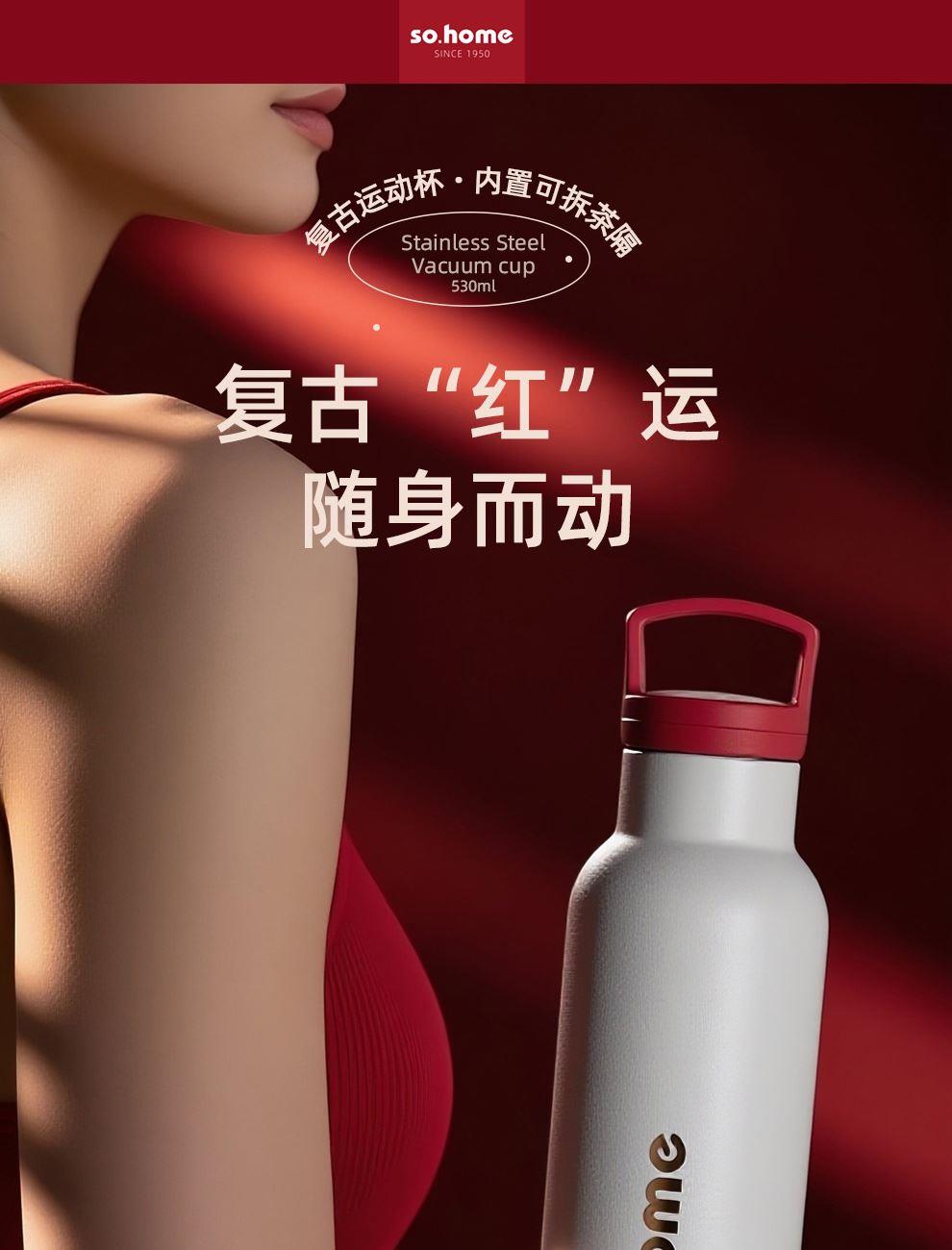 产品容量:530ml 产品材质:杯身:内外304不锈钢;杯盖:PP;密封圈:硅橡胶 1、超窄杯体,塞进单车水壶架/健身包侧袋不晃荡; 2、旋盖×茶隔×手提三合一,满足饮水多种需求; 3、304内胆,拒绝运动后补水异味残留; 5、越野级密封圈,山地车颠簸路段/健身房甩战绳0渗漏。