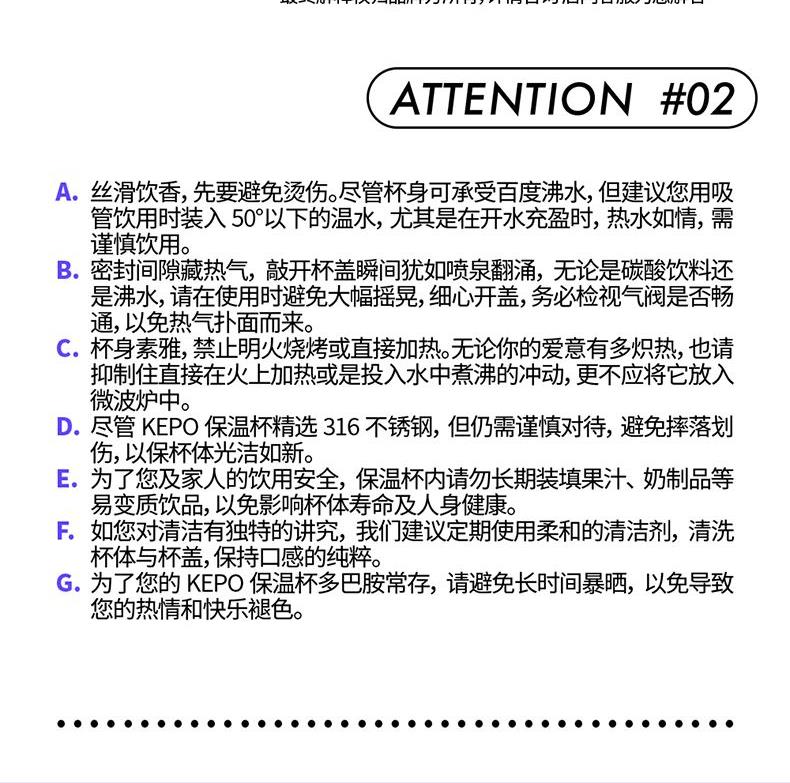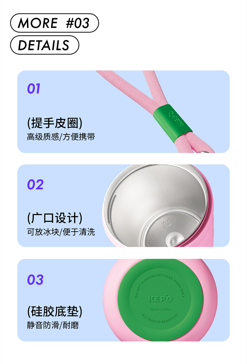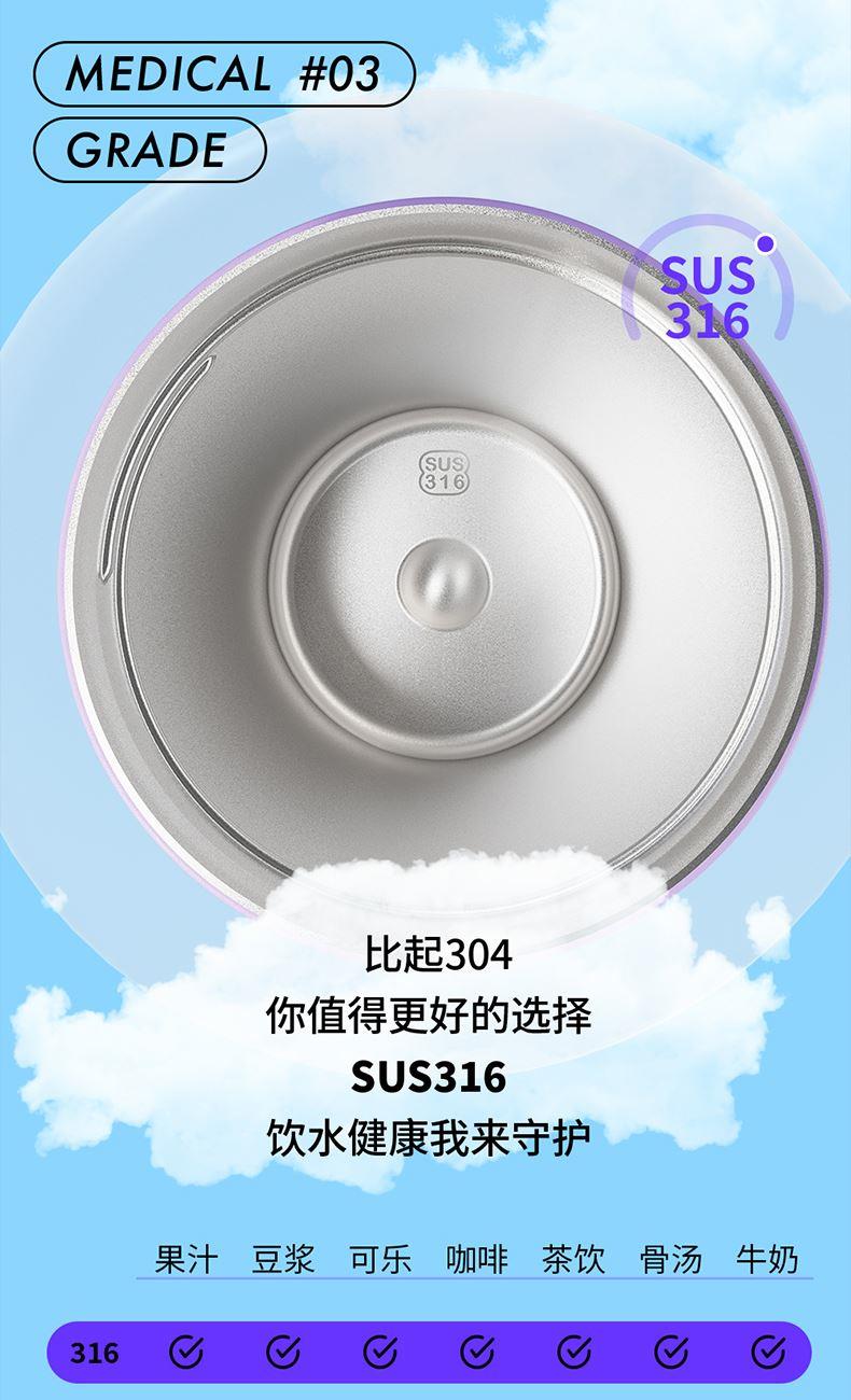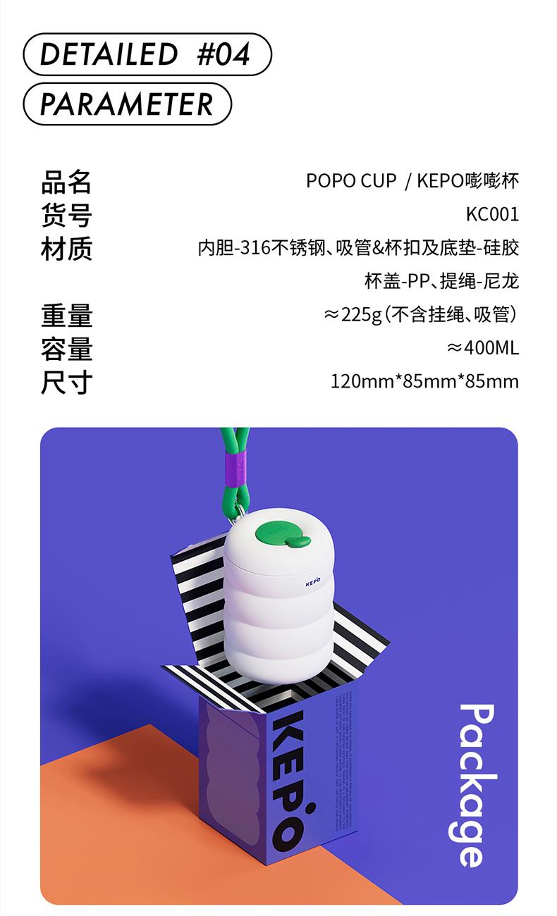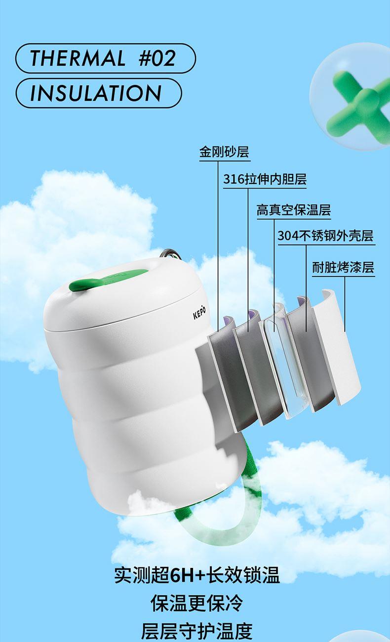 材质:304不锈钢杯身、316不锈钢内胆、硅胶、PP 颜色:白色、粉色、紫色、绿色、黑色 包装:彩盒 (1)多巴胺,潮流INS设计 (2)吸管引用、直饮,两种方式合二为一 (3)棉质圆润手提绳,便携外带 (4)长效保温、保冷(12H)