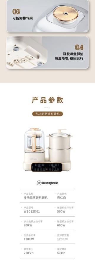 西屋Westinghouse多功能烹饪料理机WSC12D01 西屋Westinghouse多功能烹饪料理机WSC12D01