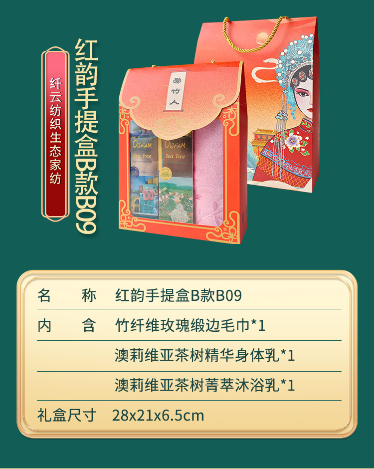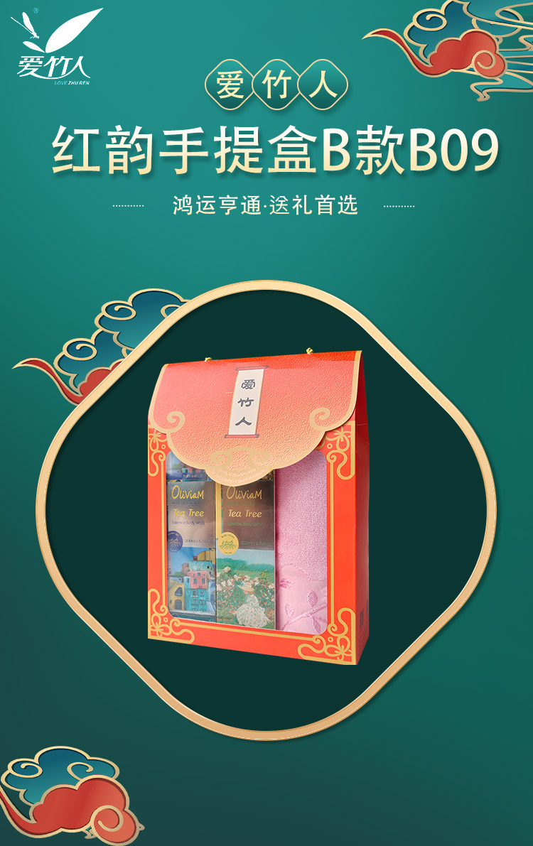 爱竹人红韵礼盒毛巾身体乳沐浴乳3件套B09