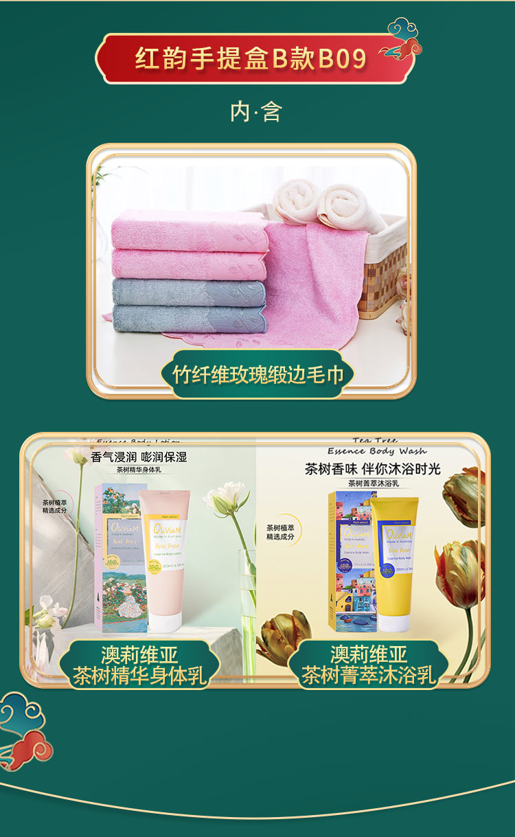 内含: OLIVIAM澳莉维亚茶树精华身体乳*1 OLIVIAM澳莉维亚茶树菁萃沐浴乳*1 竹纤维玫瑰缎边加厚毛巾*1 澳洲原装进口:美妆新品 京东自营5W+销量 2025抖音小红书畅销产品 搭配爱竹人竹纤维毛巾 实用 美观 高颜值 开门红 节日礼品 随手礼 劳保 福利 积分兑换 一件代发