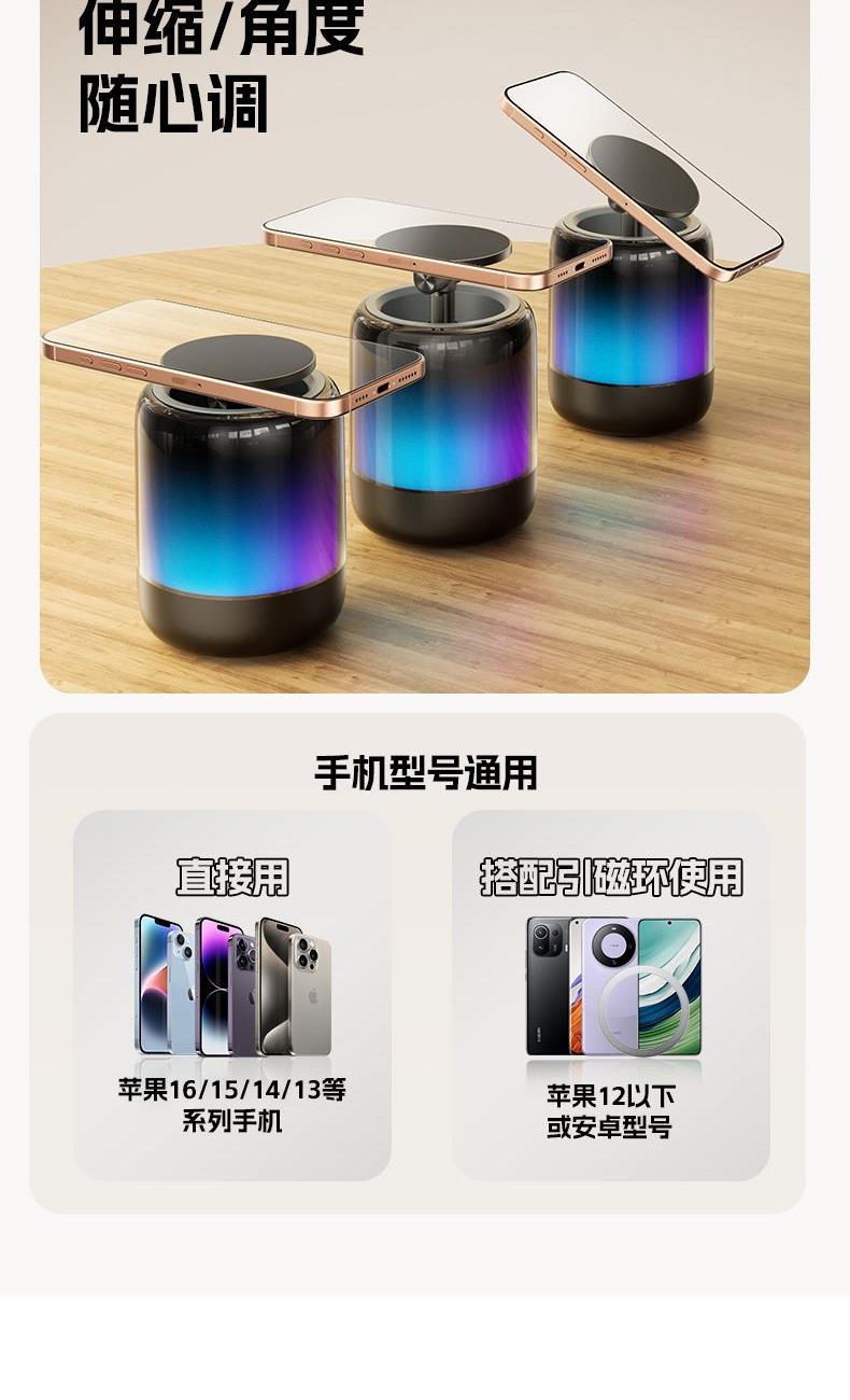 奥苏米四合一磁吸支架炫彩蓝牙音响小夜灯