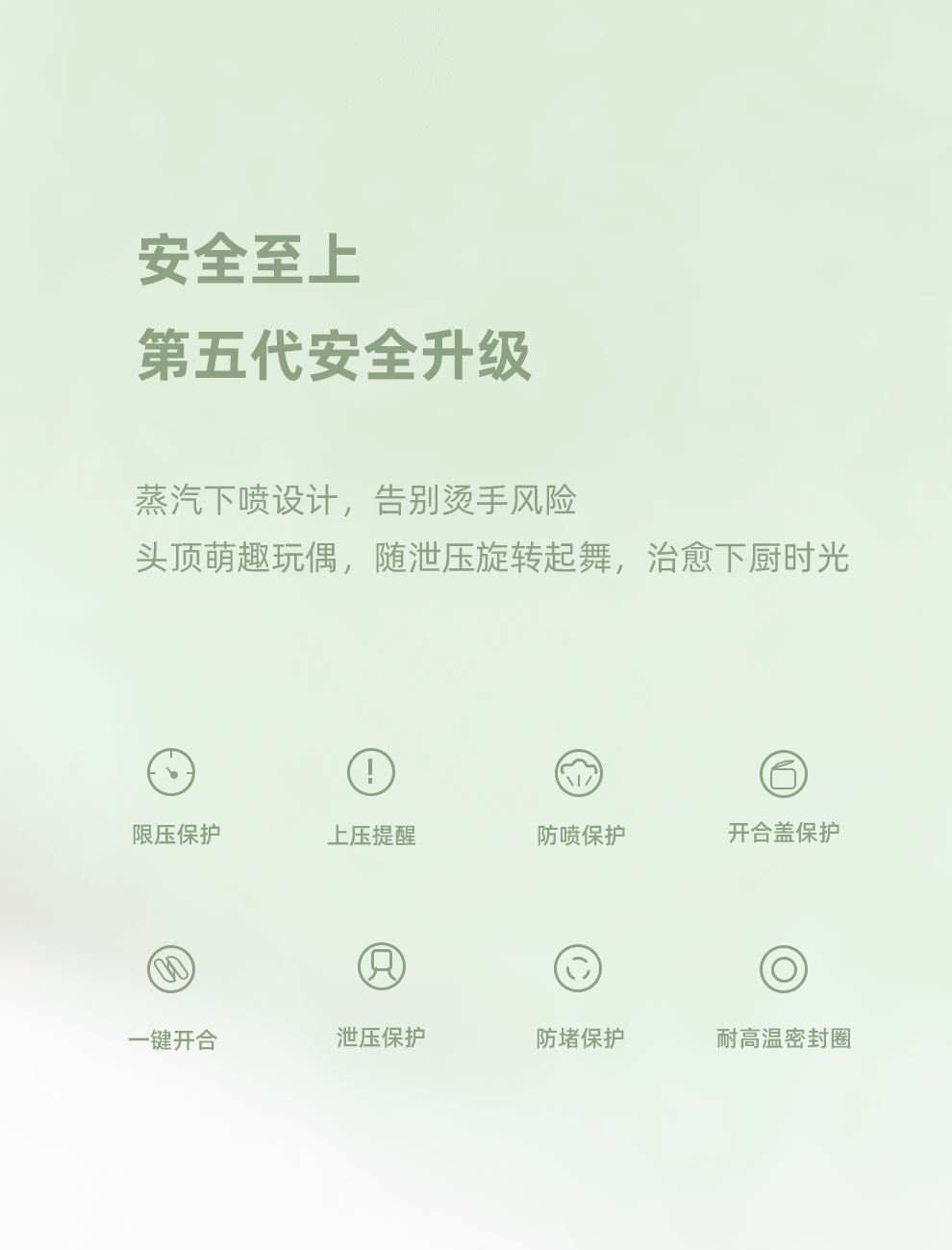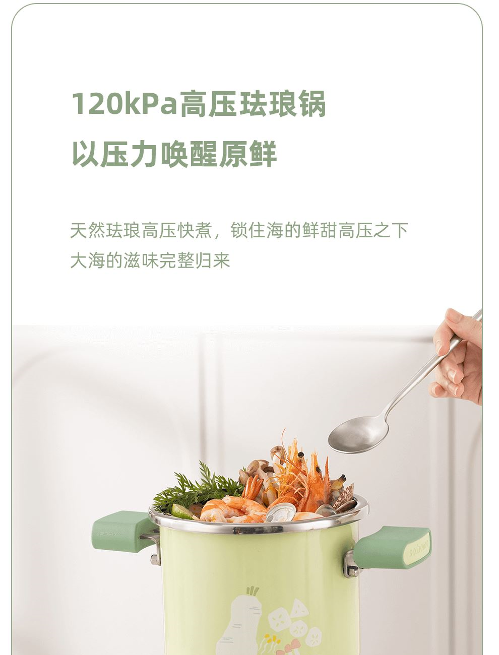 产品容量:2.5L 产品材质:锅身:10Cr17不锈钢、珐琅、 锅盖:不锈钢+硅胶+尼龙+玻纤 把手:电木+硅胶+尼龙+玻纤+201 1、德国进口珐琅;精致小巧,容量不凡 2、高压快炖,肉嫩味美 3、120KPA的高压设计,使得炖肉时间大大缩短,不仅快,而且炖出的肉质鲜嫩多汁,口感软糯,仿佛将肉质的鲜美锁在锅中,让人一尝难忘。 4、旋转开并,安全便捷 5、独特的旋转开关设计,不仅增加了使用的安全性,避免了误操作导致的危险,而且操作起来简单方便,即便是厨房新手也能轻松上手。