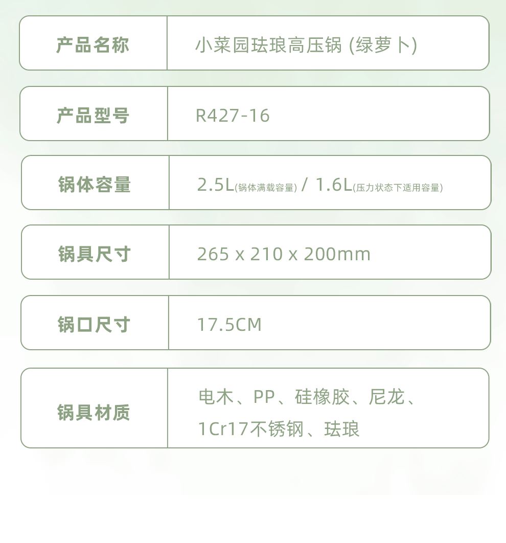 so.home绿萝卜高压锅R427-16 so.home绿萝卜高压锅R427-16